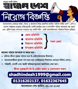 দৈনিক স্বাধীন দেশ পত্রিকায় নিয়োগ বিজ্ঞপ্তি